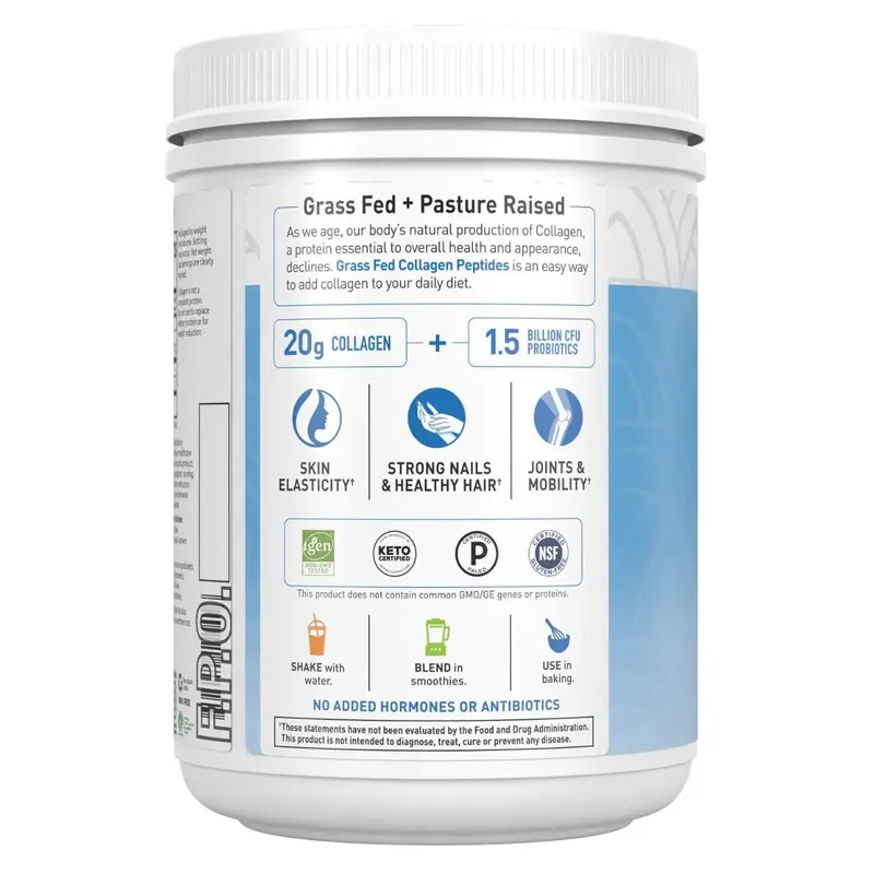 پودر پپتید کلاژن تغذیه شده با علف از برند Garden of Life، یک مکمل غذایی منحصر به فرد است که به طور خاص برای تقویت سلامت پوست، مو، ناخنها و مفاصل طراحی شده است. این محصول حاوی ۱۸ گرم پروتئین کلاژن هیدرولیز شده در هر وعده است که به بهبود الاستیسیته پوست، تقویت ناخنها و سلامت مو کمک میکند. همچنین، این پودر با ترکیبی از آمینو اسیدهای ضروری و BCAAها، به حفظ سلامت مفاصل و بهبود تحرک کمک میکند. این مکمل با ۲۵۰ میلیون CFU پروبیوتیک برای بهبود هضم و سلامت روده همراه است و به راحتی در مایعات داغ یا سرد حل میشود.پودر پپتید کلاژن تغذیه شده با علف از برند Garden of Life، یک مکمل غذایی قدرتمند است که با هدف تقویت سلامت پوست، مو، ناخنها و مفاصل تولید شده است. این محصول با استفاده از کلاژن هیدرولیز شده، جذب بالایی دارد و میتواند به سرعت در بدن اثرگذار باشد. ترکیب این مکمل پوست مو ناخن شامل آمینو اسیدهای ضروری است که نقش مهمی در ساختار پروتئینها دارند و برای حفظ سلامت عمومی بدن بسیار مؤثرند.تحقیقات علمی نشان دادهاند که مصرف مکملهای کلاژن میتواند تأثیرات مثبتی بر روی سلامت پوست، مو، ناخنها و مفاصل داشته باشد.