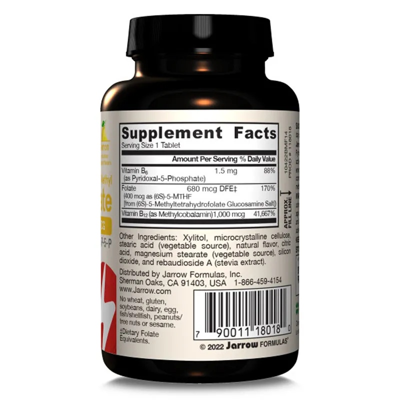 پیریدوکسال-5-فسفات (P-5-P) نیز نقش مهمی در متابولیسم پروتئینها و تولید انتقالدهندههای عصبی دارد. ترکیب این سه ویتامین در یک مکمل، اثرات مثبت قابل توجهی بر روی سلامتی عمومی بدن دارد.مکمل Methyl B-12 Methyl Folate Lemon Jarrow Formulas یک فرمول پیشرفته است که حاوی 1000 میکروگرم متیلکوبالامین و 400 میکروگرم متیلفولات در هر قرص جویدنی میباشد. این محصول با هدف تقویت متابولیسم انرژی سلولی و سلامت قلب طراحی شده و فاقد هرگونه مواد آلرژیزا است. Jarrow Formulas با هدف ارائه مکملهایی با کیفیت بالا برای ارتقاء سلامت عمومی افراد شناخته شده است.