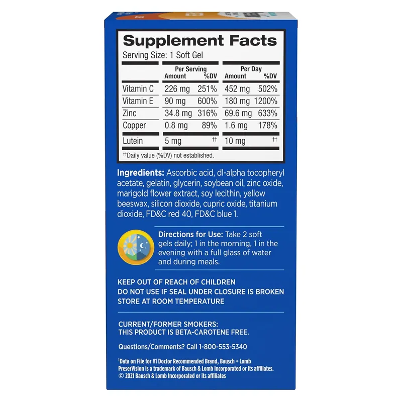 • توصیه شده توسط پزشکان: PreserVision به عنوان برند شماره یک توصیه شده توسط پزشکان چشمپزشک در میان افرادی که دچار AMD (Age-Related Macular Degeneration) هستند، شناخته میشود.